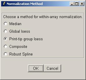Click "OK" to confirm the default within-array normalization method (print-tip group loess).